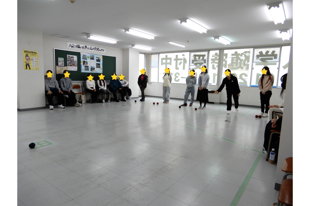 11/10(月)、11/17(月)、11/25(火)、のそれぞれの日時で各年次ごとにボッチャをおこないました。