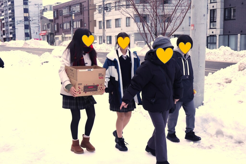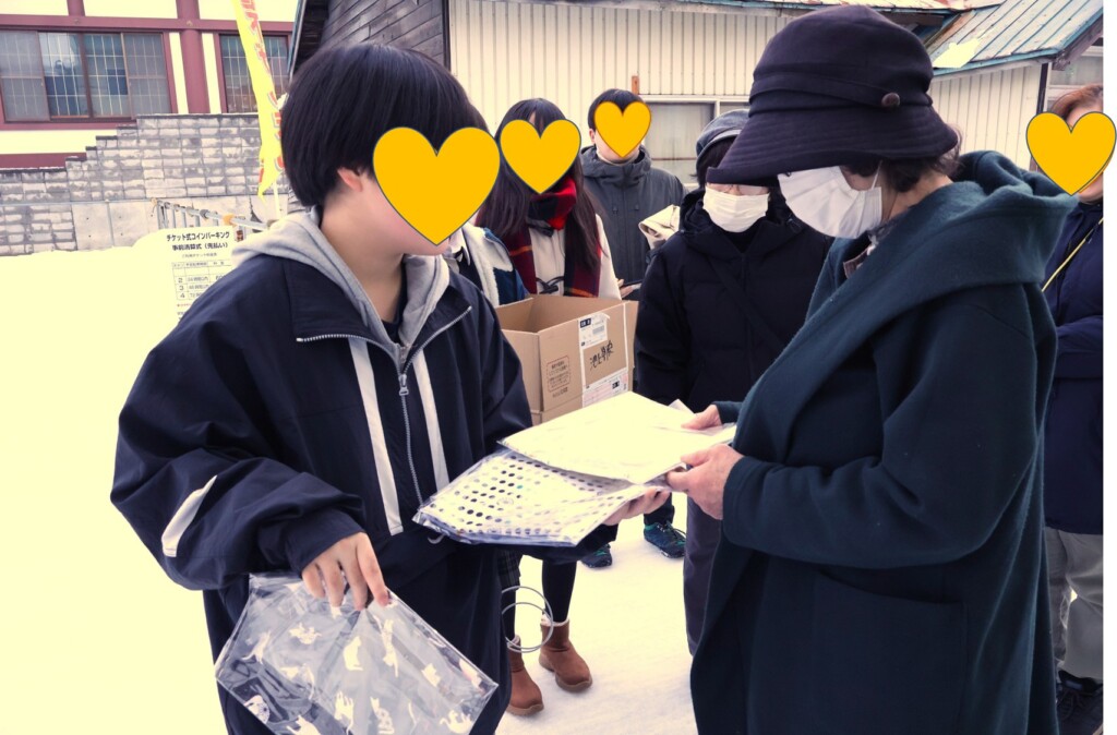 一緒に訪問した町内会の方からは、「毎年生徒の訪問を楽しみにしている方もいる」というお話をいただきました。また、プレゼントをお渡しした後に、訪問先の方から「すべるから転ばないでね」と温かいお声がけやお見送りをいただいきました。