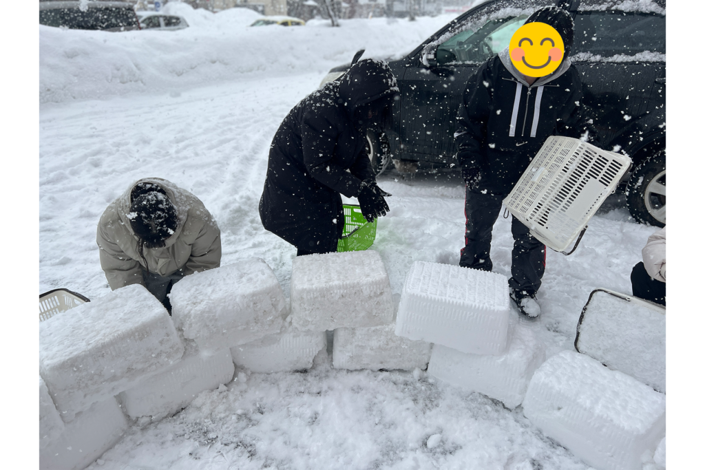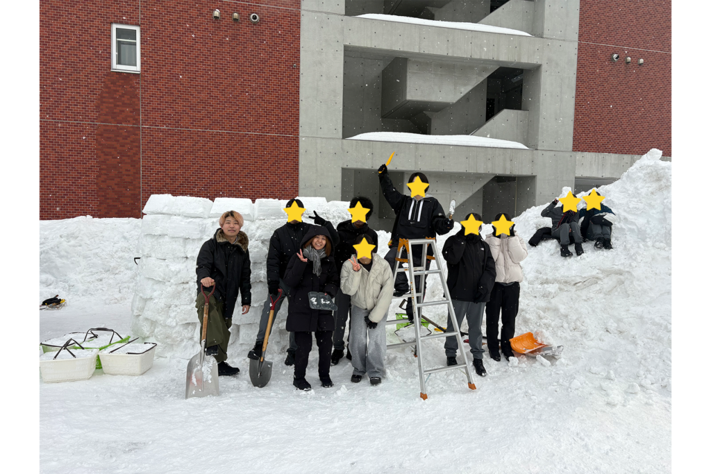 残念ながら時間の都合で「完成!」とまではいきませんでしたが、悪天候をもろともせず、夢中で雪を積み上げる姿はまさに青春そのもの。終わる頃には、みんなの顔に清々しい達成感が浮かんでいました。