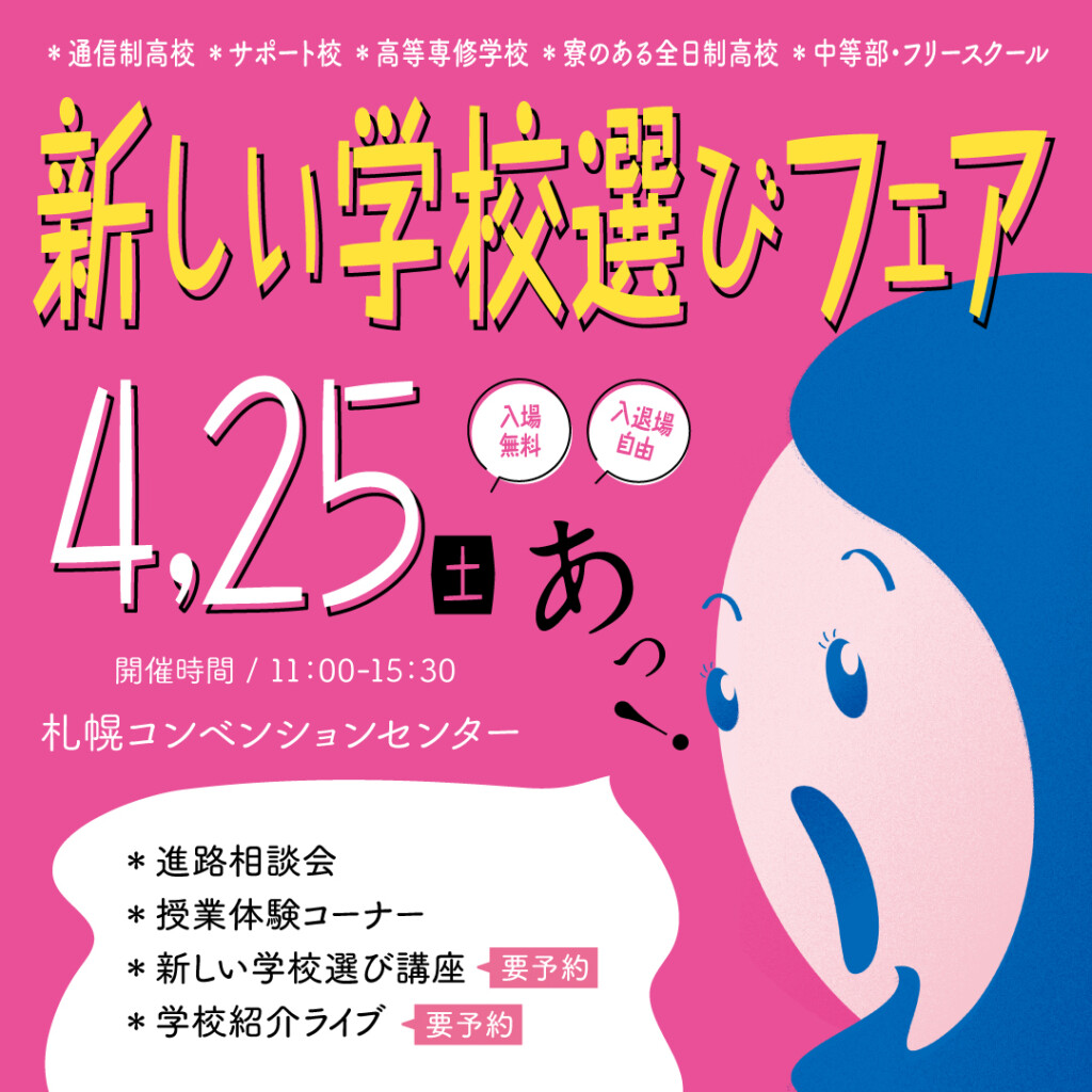 4/25[土]に札幌にて開催される【新しい学校選びフェア】に本校も参加します。