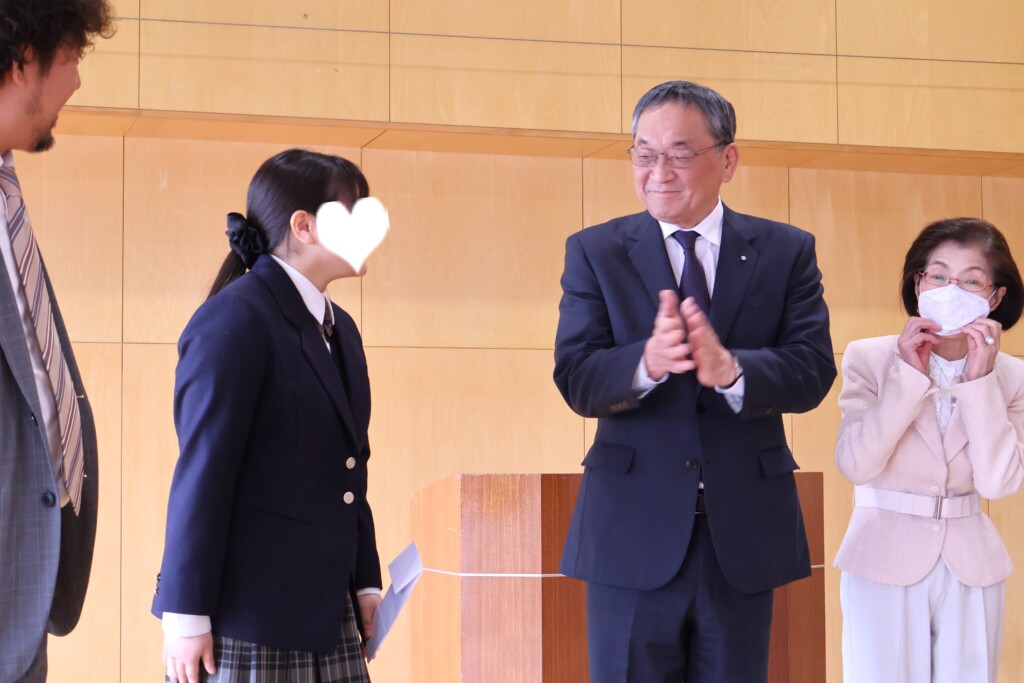 授与された生徒は、緊張した面持ちながらも、